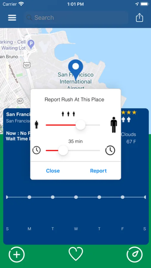 RUSHOUR is a crowd sourced crowd reporting service. Search a place of interest and see crowd ratings, current rush & weather. If you are there report what you see.