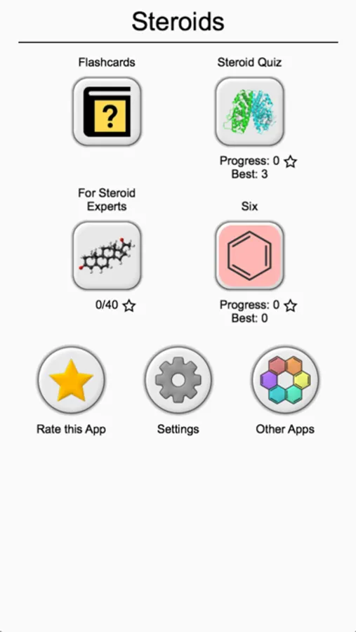 Steroids are an important class of natural products with various biological functions: steroidal hormones (estradiol, testosterone), vitamins (vitamin D3), lipids (cholesterol). This app is designed for chemistry, biochemistry, and pharmacy students. It provides you with a convenient tool to get acquainted with chemical formulas of the most important natural and synthetic steroids. Many of them are top-selling drugs used for a treatment of asthma, baldness, prostate cancer, and as oral contraceptives.