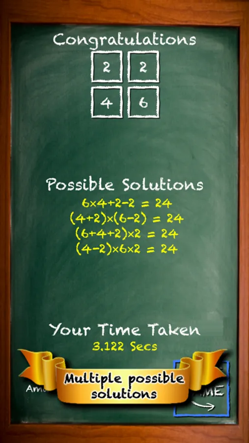 Make the answer equal to 24 using 4 numbers and the + - x ÷ operators. Perfect for kids wanting to learn math while having fun.