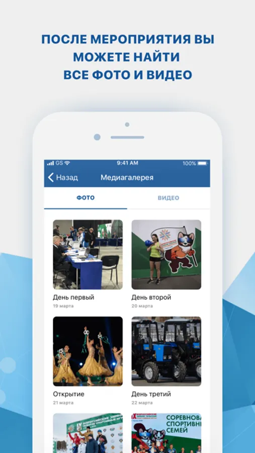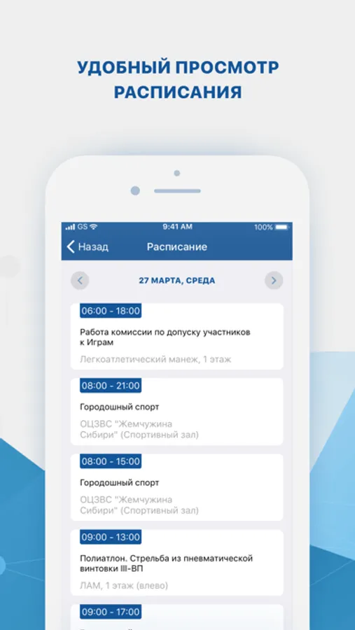 - Мероприятия, их расписание, онлайн-трансляции, результаты с возможностью комментирования;