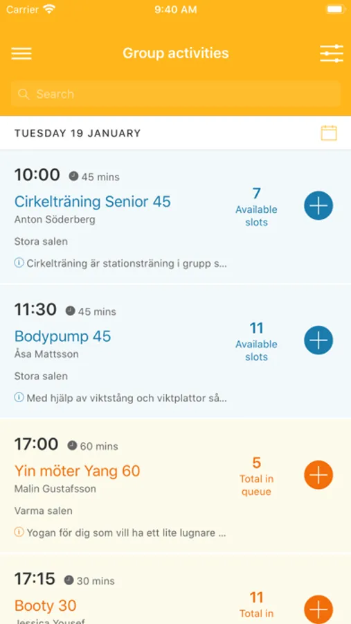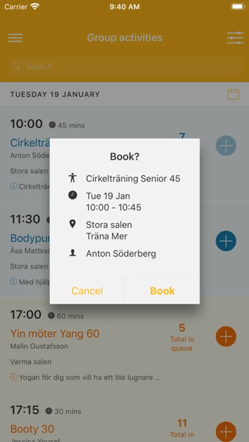 Med denna app kan du enkelt boka dig på pass hos Tränamer.