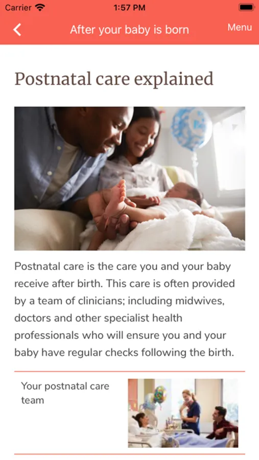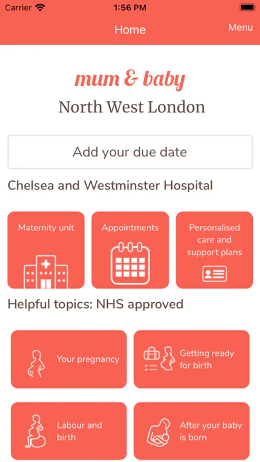 The first version of Mum & Baby was launched in 2014 and was built through the initiative of Dr Sunita Sharma, Lead Consultant of Postnatal Services at Chelsea and Westminster Hospital NHS Foundation Trust, supported CW+, the charity of Chelsea and Westminster Hospital NHS Foundation Trust (CWPLUS Registered Charity No.1169897). The app was subsequently expanded and updated, led by midwife project managers in the North West London ‘early adopters’ team in 2018 and 2019. This project would not have been successful without the ongoing support of CW+ and Imagineear and the North West London Local Maternity System.