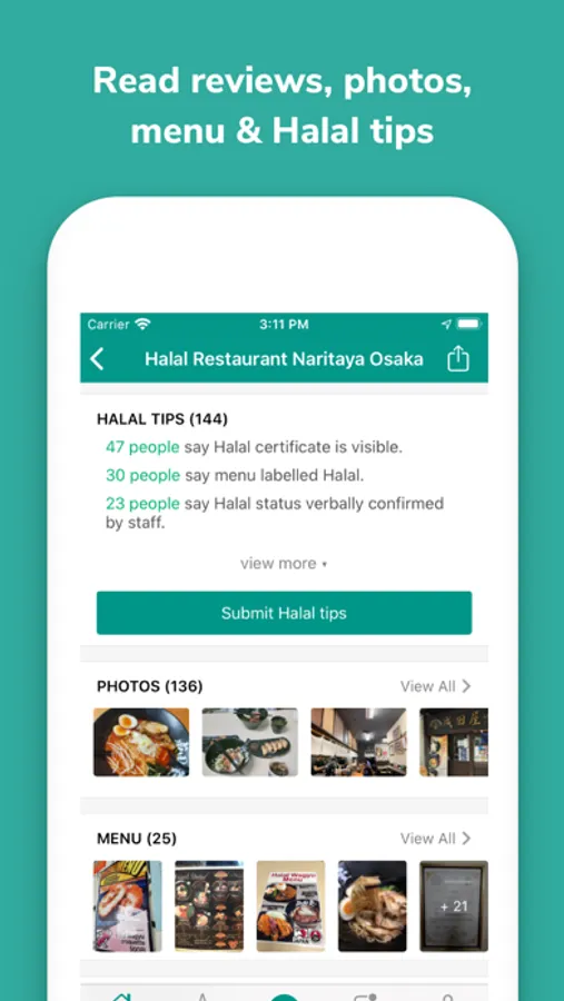 3. The only Halal app that offers "Halal tips" features where Muslim communities can easily "tips" other users on the Halal condition of the restaurant. Get rid of the syubhah before choosing a restaurant.