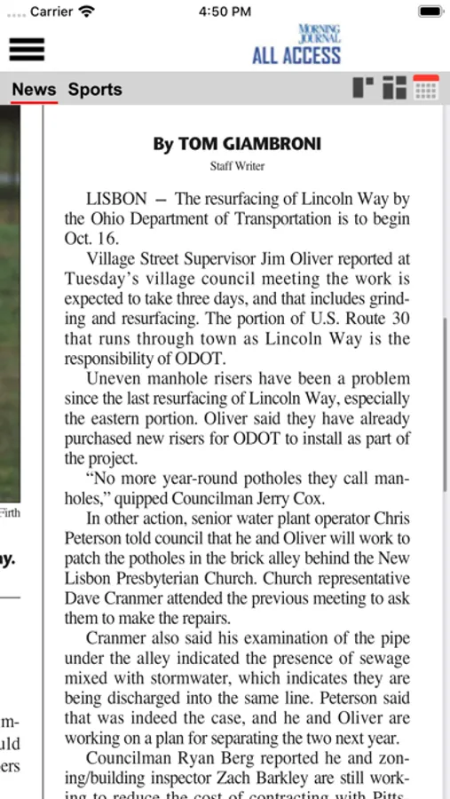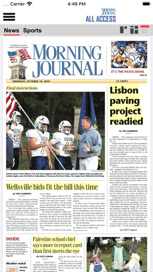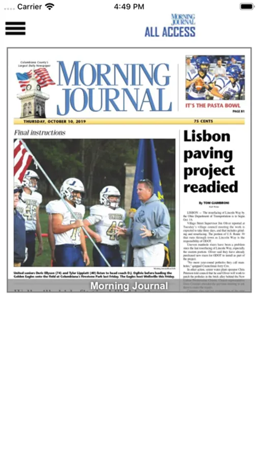 Stay on top of news from Lisbon and surrounding areas by receiving the full print version of the Morning Journal on your iPhone or iPad. Every page of every edition is delivered to your device. The Morning Journal is the best source for local and national news, sports, weather and features in Lisbon and Columbiana, Jefferson, and Mahoning counties in Ohio and Hancock County in West Virginia. Download the app to view the printed pages of the newspaper or read headlines and stories along with related photos in a built-in story viewer.