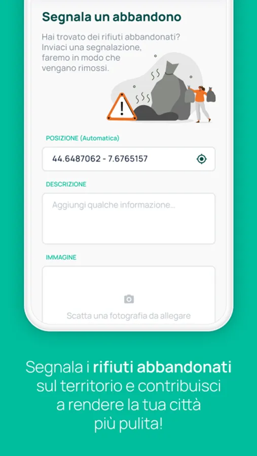 • Area per segnalare l’abbandono di rifiuti sul territorio;