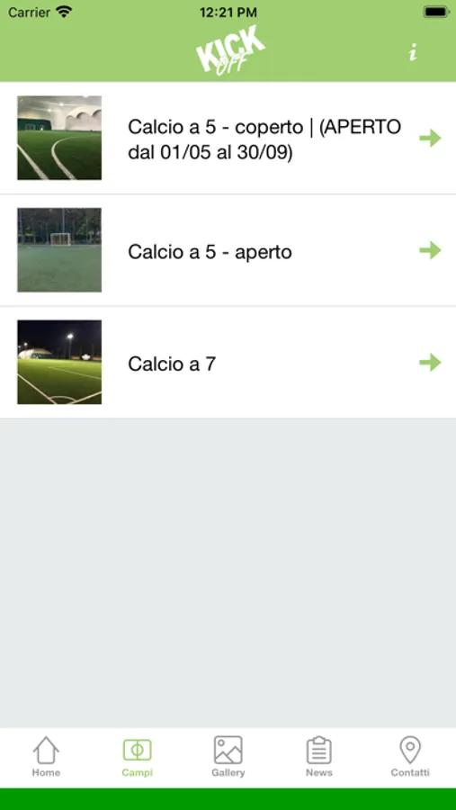 - Possibilità di vedere la disponiblità dei campi