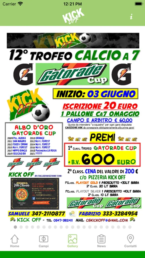 Kick Off è lieto di presentarvi la sua nuova applicazione mobile, attraverso la quale potrete completare la vostra visita, oltre a mantenervi sempre aggiornati su tutte le iniziative e promozioni proposte dalla nostra attività.