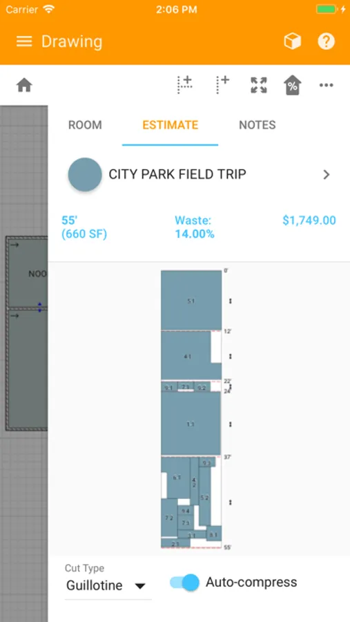 ● Share Floor/Cut/Seam plan via email or to other apps as PDF