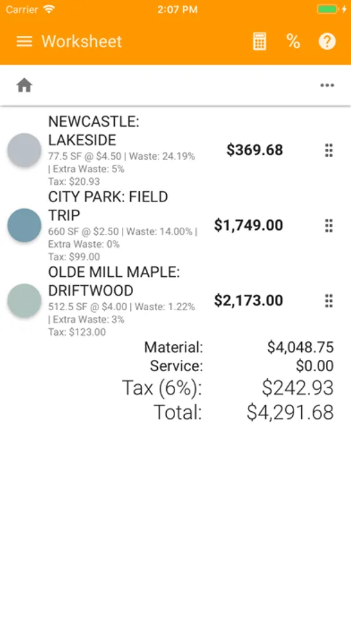 ● Select the products to be installed, including carpet, vinyl, tile & plank