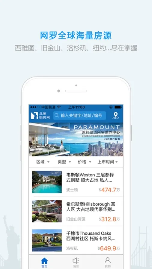 北美购房支持客户与国内专业房产顾问、美国经纪人即时在线沟通,是国内领先的北美买房置业平台。