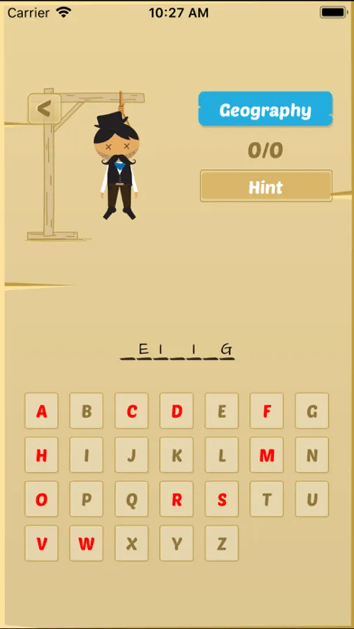 Stumped? You can use hint button to reveal a letter and avoid a gruesome fate!