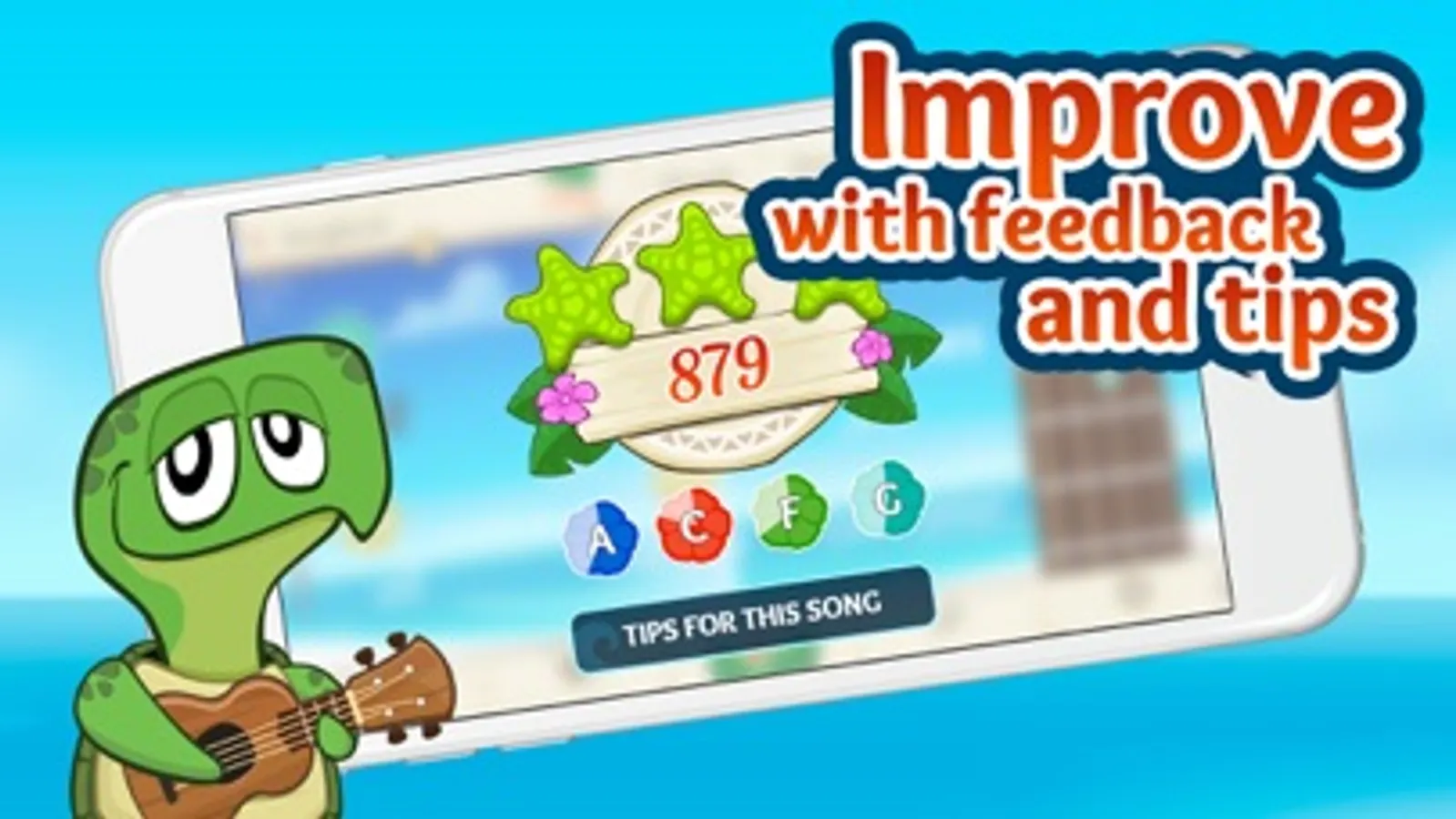 Songs are displayed in a play-along style with easy chords, adjustable backing tracks, and lyrics. The app listens to you play and gives you feedback on how to improve, so grab your ukulele and start your free trial now! Only 10 minutes of daily practice will get you playing your first song in no time: Ukeoke is the perfect learning tool for beginners and an awesome songbook for more advanced players.