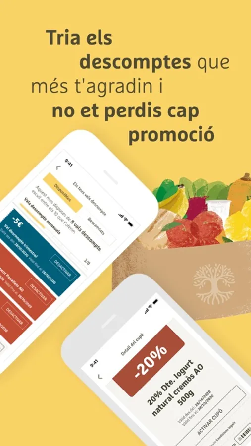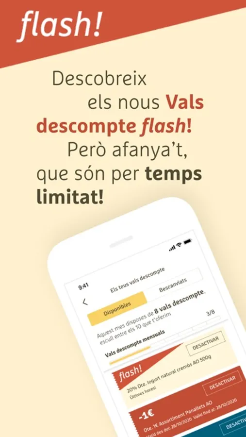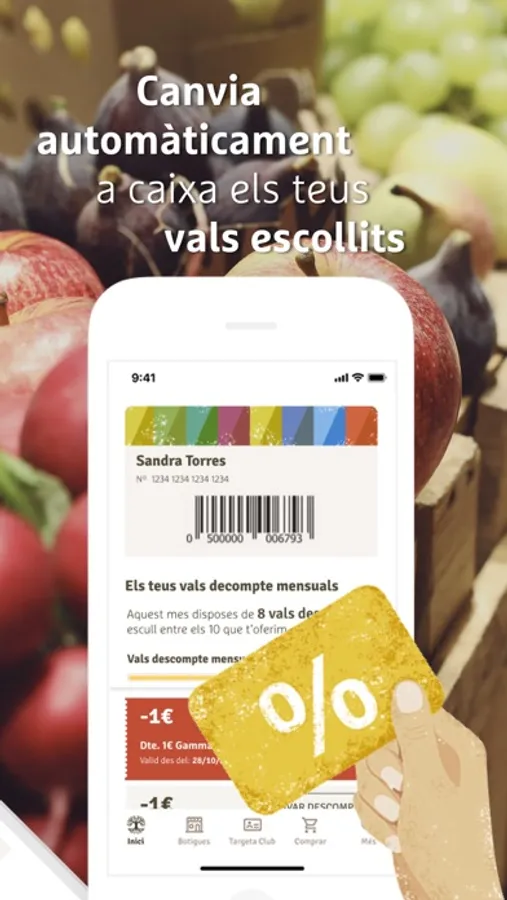 Rep cada mes tots els descomptes i activa els que més t’interessin. Et recomanem que revisis l’App abans d’anar a comprar i activis tots els descomptes que t’interessin. D’aquesta manera s’aplicaran automàticament al teu tiquet de compra.