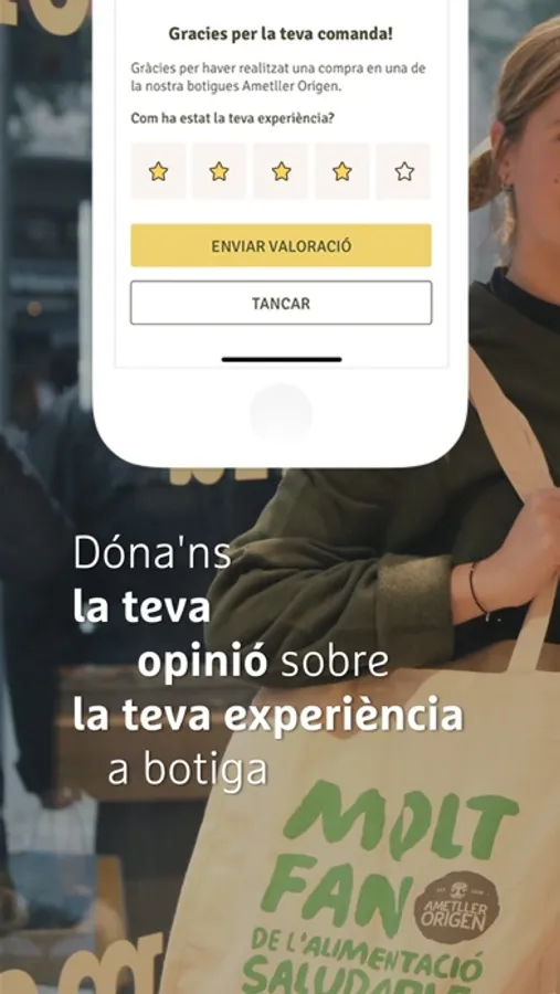 A més, després de cada compra, valora de l’1 al 5 la teva experiència a botiga i ajuda'ns a millorar.