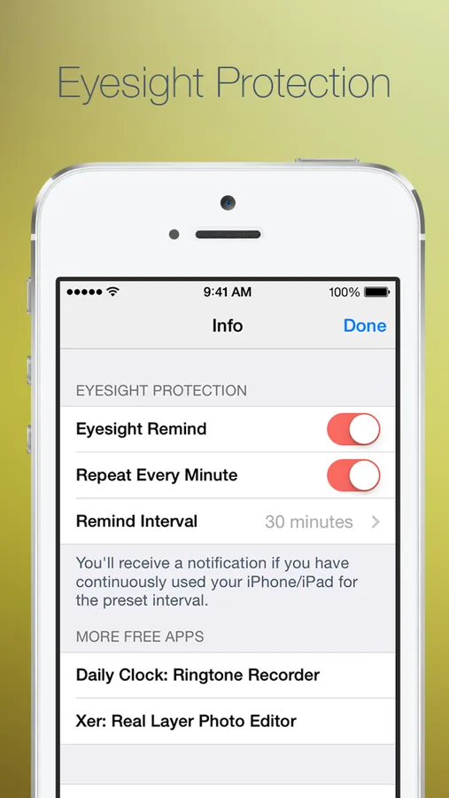 Usage Log will remind you to relax when you have been playing with your iPhone for the preset time interval to protect your eyesight.