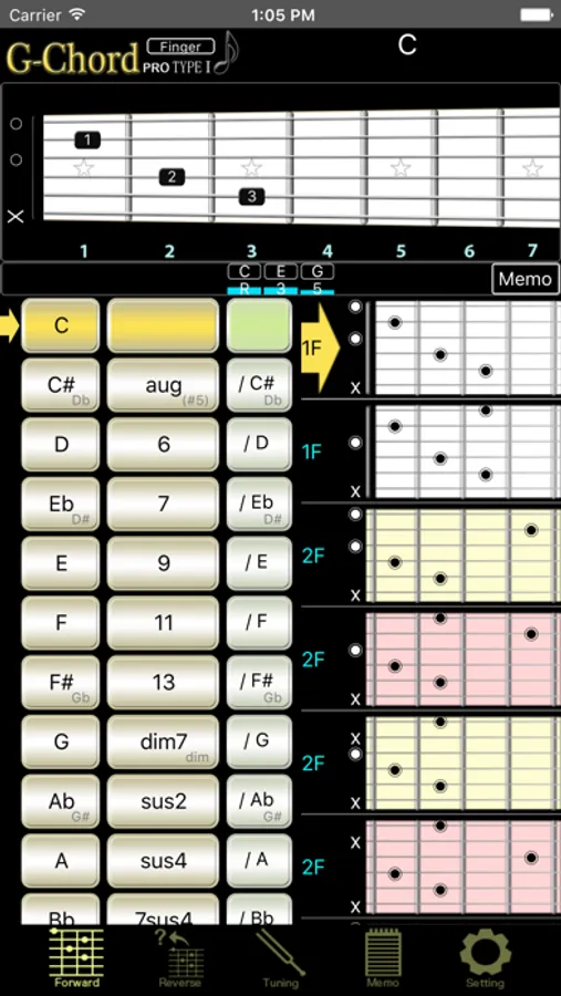 In the same way, chord names can be determined from finger position (reverse lookup). Please try it out!