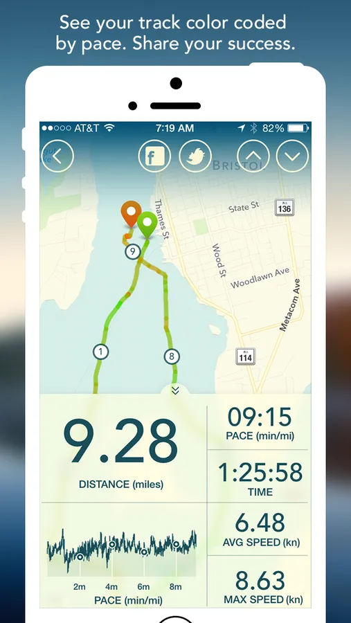 When viewing saved tracks your route shows up on the map color coded by speed. It shows where you went the fastest (green) and where you were slowest (red).