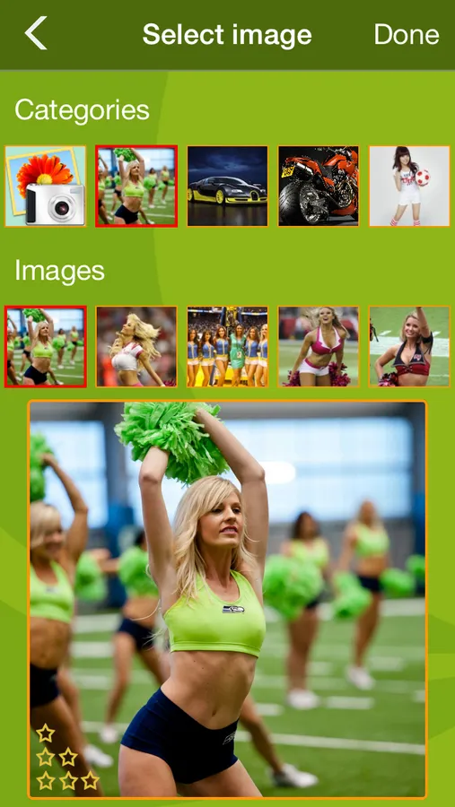 Although you can play slide puzzles with various type of images: Cute cheer girls, cool football girl and awesome sport cars, motorcycles… Try to own them all.