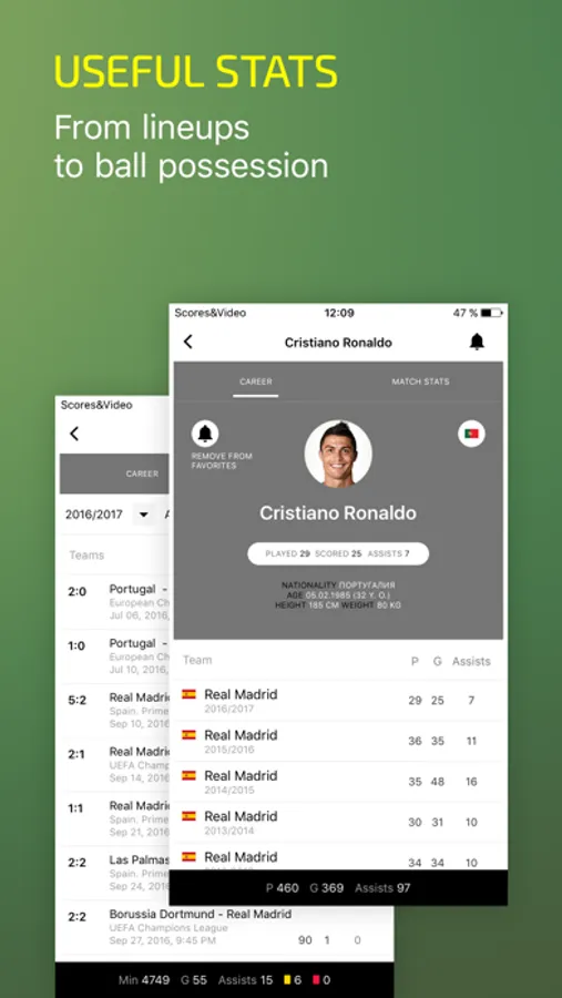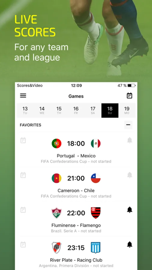 Scores & Video is not just another live score app. Our ambition is to create the best second screen for football fans everywhere. Push notifications, video highlights, interactive polls and photos recreating the atmosphere of stadium - everything to enhance the experience of watching football once and forever.