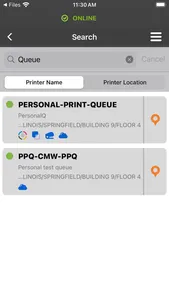 - search for authorized printers by printer name, long name or printer location