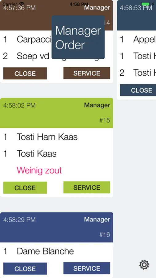 Use an iPad (or iPhone) to see the orders from your waiters. No need to install a POS printer anymore. Can also be used in the bar or other places where you would need a ticket printer.