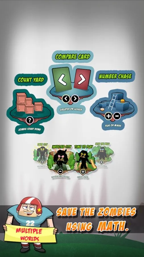 Math Vs Zombies 2 contains FOUR different kinds of games that sharpen your math skills and let you have loads of fun at the same time: