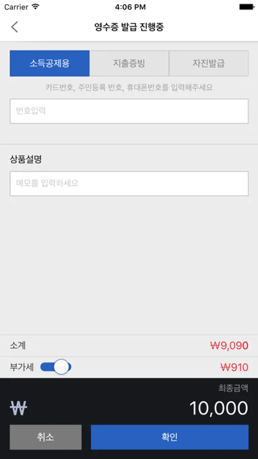 페이앳(Payat) 현금영수증 발행 서비스는 간단한 무료 회원 가입만으로 현금 영수증을 바로 발행할 수 있는 서비스로 현금 거래가 많은 자영업자분들이나 현금영수증 의무발행 업종 사업자 분들께 필수적인 어플리케이션입니다.