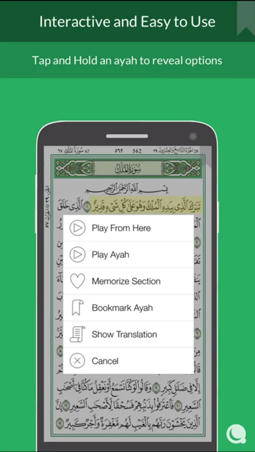 Quran Madina is an intuitive Quran app that enables you to read the famous authmani madina mushaf script with interactive audio and translation features. The Madina mushaf Quran is used by millions of muslims in Arab countries and around the world. Simply tap and hold on any ayah to play the recitation, memorize, bookmark or view the translation.
