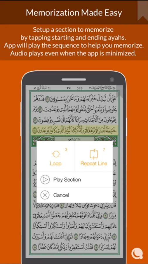 - Memorize sections - Hifz friendly mode to repeat lines or section multiple times