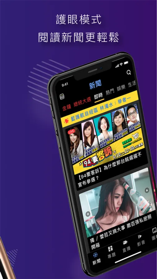 3. 自製節目:獨家豐富又多元的原創內容,包括政治callin之94要客訴、明星限定之安安大明星,健康生活的奕起聊健康,無車不歡之怎能不愛車,更多精采內容等你來挖掘!