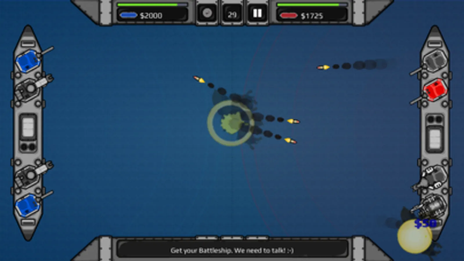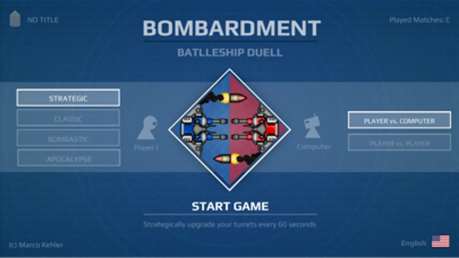 Bombardment - the action-full realtime battleship game for 1-2 players on the same device. Control mighty battle ship turrets and try to defeat the other captian. You have to sink the oponens battleship by bombing it with rockets and missiles. Both players play on the same device against each other. If there is just one player this player could play against a computer controlled enemy.