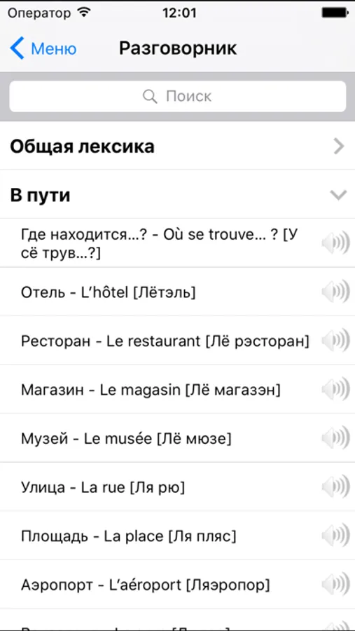 ● КРАТКИЙ РАЗГОВОРНИК. Разговорник поможет при необходимости быстро подобрать нужное слово. К сожалению в текущей версии разговорник не предоставляет возможность прослушивать произношение слов и фраз (динамик не активен).