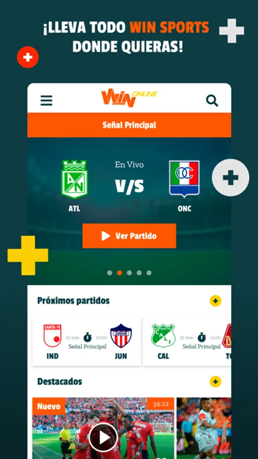 La aplicación oficial de Win Sports se ha renovado con más fútbol y más deportes. Ahora también podrás encontrar la señal de Win Sports +, el único canal oficial que transmite todos los partidos de la primera división del fútbol colombiano y que además cuenta con programas de análisis, debate, variedad, entrevistas y todas las noticias relacionadas con la Liga Colombiana.
