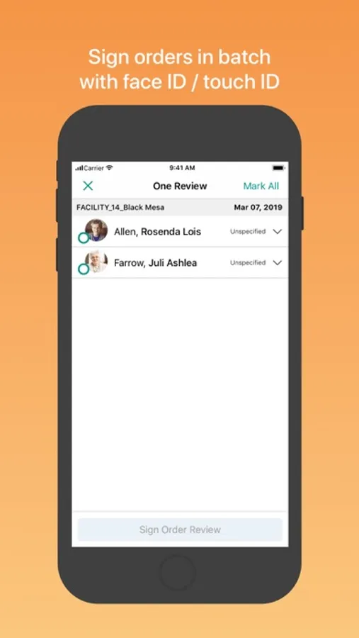 - Provide e-Signatures for telephone and verbal orders, sign once for multiple patients