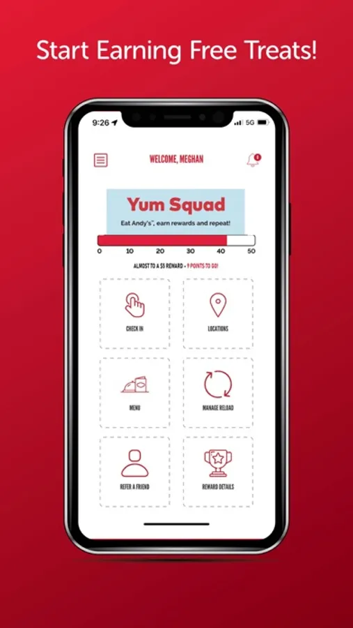 The Andy's Frozen Custard loyalty app is a convenient way to gain Yum Squad points and earn free treats!