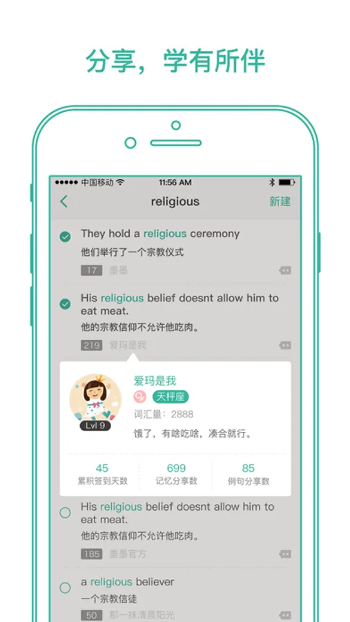 「这里有:科学高效的抗遗忘算法、精彩美妙的单词内容、简洁的操作,实实在在帮你高效规划海量词汇记忆。」