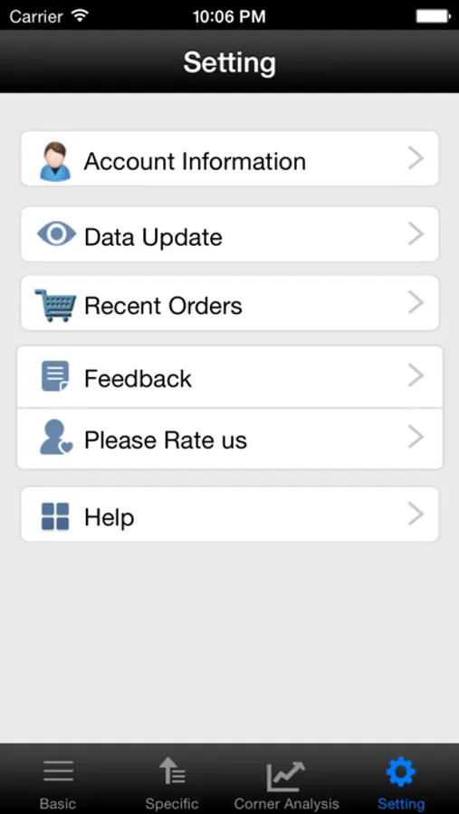 Corner App has three modules which are Basic,Specific,Corner Analysis.