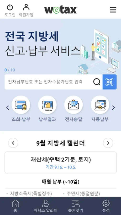 - 위택스 회원이 아니신 경우에는 상단의 "회원가입" 메뉴로 가입 후 이용해주시기 바랍니다.