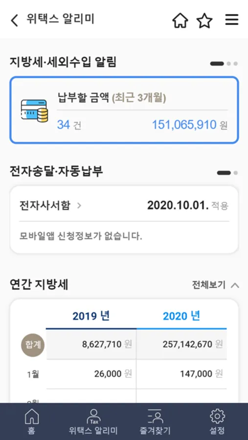 - 지방세·세외수입 : 본인의 미납 내역을 조회한 후 납부할 수 있습니다.