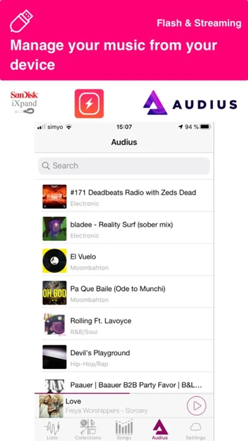 √ Complete your music collection looking for free music on Audius (Only streaming. The download is not available)