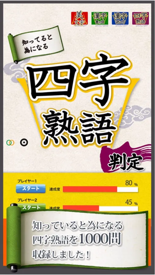「四字熟語判定」は、一般常識として知っておと為になる四字熟語を中心として判定するアプリです。