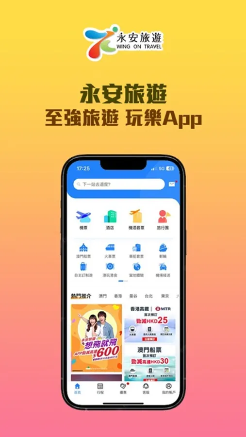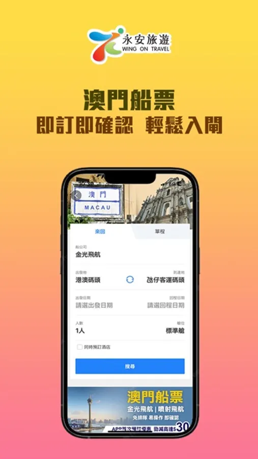 永安旅遊紮根香港55年,致力提供專業稱心的旅遊服務。一站式旅遊產品預訂平台,精心打造假期旅遊體驗。即時預訂全球200多個城市的機票,超過100萬間酒店及多間廉價航空機票任您選擇,更提供香港往返澳門船票。登記成為會員,專享額外旅遊優惠 !
