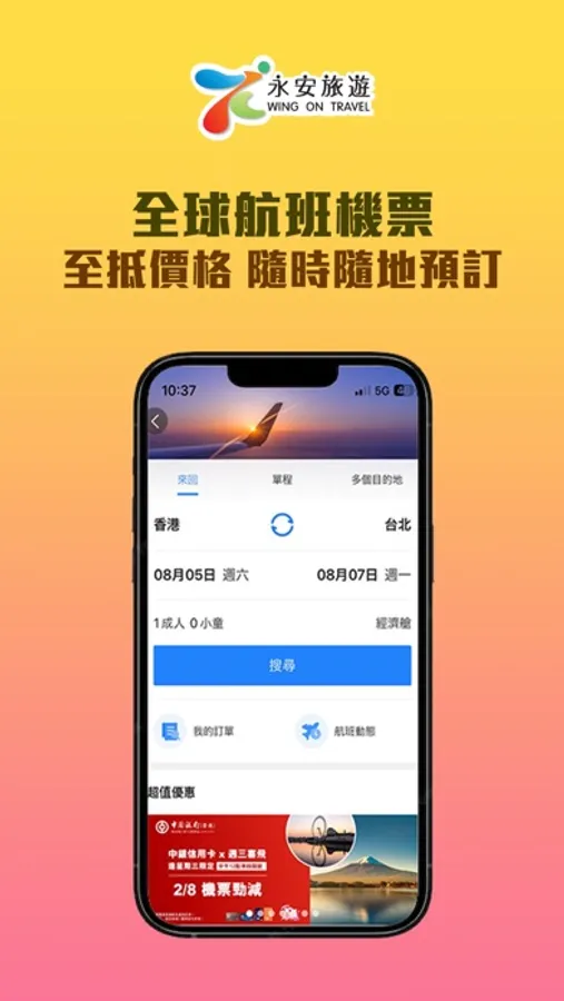 ● 【機票 Flights】 - 全球超過200個城市的機票,80多間航空公司,包括17間廉價航空,多個國際及內陸航班任您選擇。訂機票仲可以選擇不同城市的航班,自由方便。
