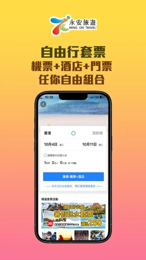 旅行計劃中?永安旅遊為您搜羅全球優惠機票、酒店、旅行團等旅遊產品。幫您快速機票比價,追蹤理想航班。酒店住宿包括:星級酒店、度假村、民宿、公寓等各種選擇。發掘當地旅遊體驗,港玩港食精彩生活,至抵Staycation酒店套票,本地旅遊及生活百貨購物,盡在永安旅遊APP。搶先了解最新旅遊優惠,獲取APP專屬折扣,即刻下載!