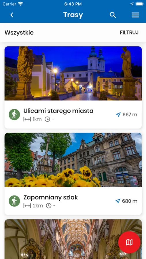 Aplikacja zawiera propozycje tras pieszych – każda z tras zaznaczona została na mapie offline, a dzięki technologii GPS użytkownik widzi podczas wycieczki swoją dokładną pozycję. W aplikacji zaznaczono też obiekty warte uwagi, atrakcje turystyczne i zabytki wraz z fotografiami i opisem. Użytkownik znajdzie tutaj również miejsca praktyczne takie jak noclegi, gastronomia, bankomaty czy parkingi (z aktualnym podglądem z kamerek).
