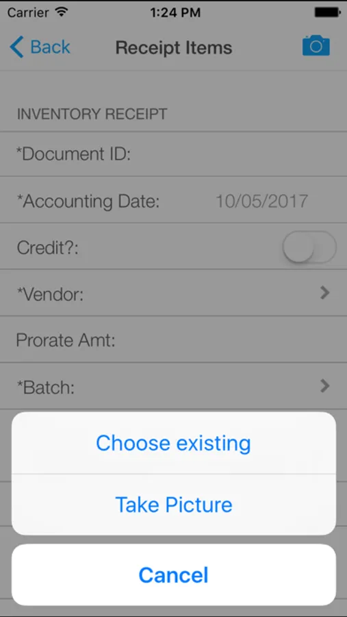 f. Receive: Based on Inventory module license, user can record items received from a vendor at a warehouse.