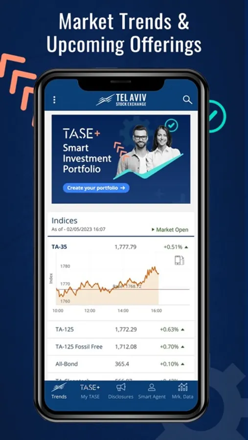 The latest version of Tel Aviv Stock Exchange official app, will keep you up to date with everything that is happening in the capital market. This version also includes a Smart Investment Portfolio: TASE + a feature that offers advanced tools for your investment portfolio.