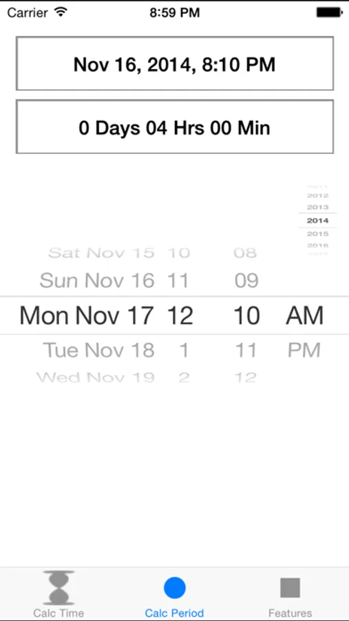 Time Calc Timer calculator is a ** FREE ** app that allows you to calculate how many days between two dates showing the number of days, hours, minutes and seconds. There is also a timer that counts down between the two dates selected, useful for counting down until your holidays or when your kids should stop playing their computer games. It can also be used as a daily hours calculator, weekly hours calculator,time track, time2track and a date and time calculator pro.