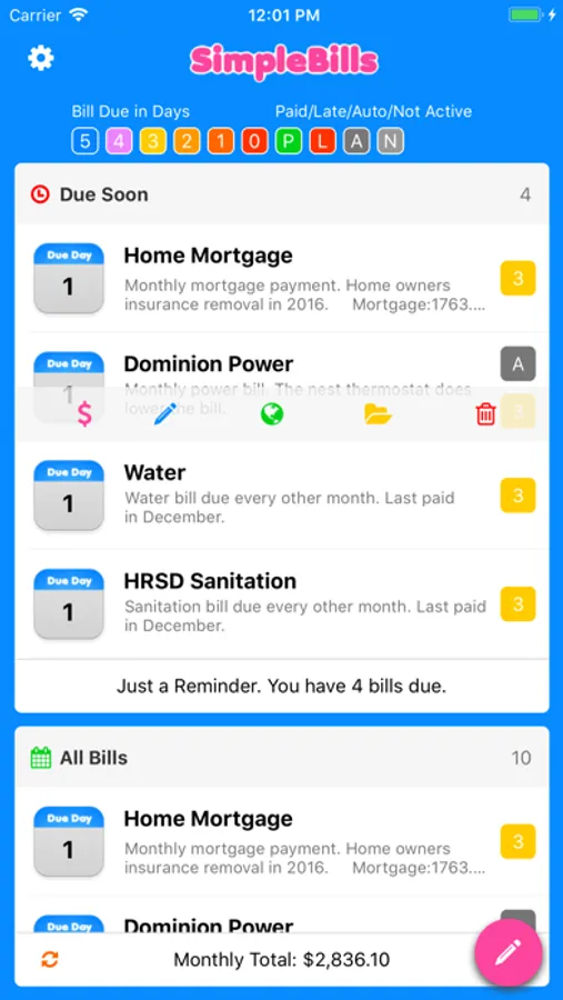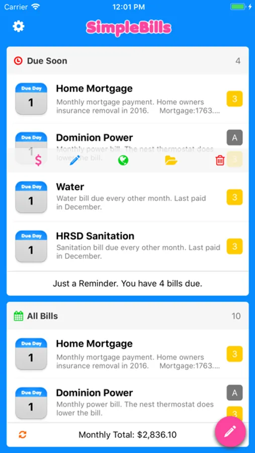 Never miss paying another bill. With this beautifully designed iOS 8 ready app, you can, at a glance, see all your monthly bills. Keep track of the bills you have paid and how much you owe each month. Bill management has never been this easy or, in other words, just plain simple.