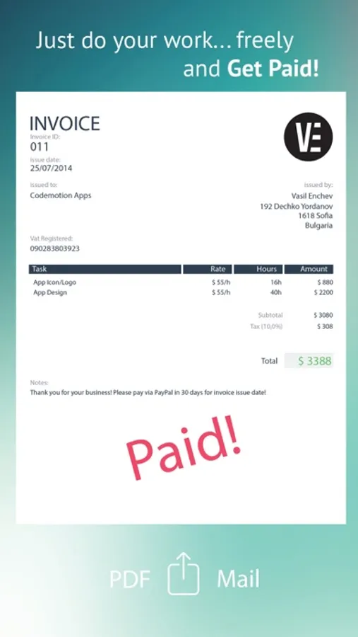 • Your own Invoice Logo, from camera roll